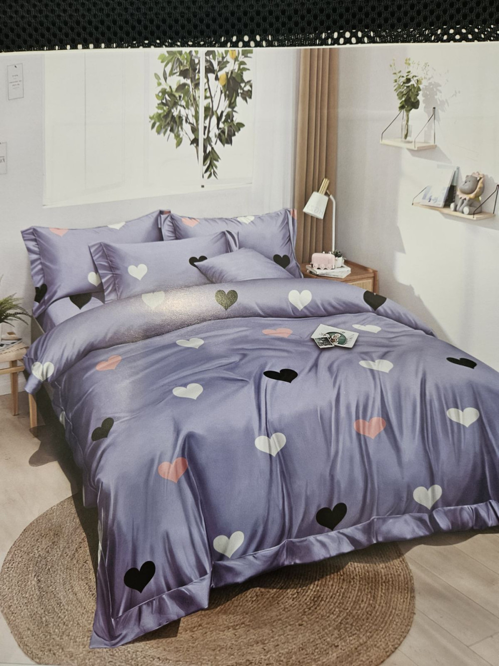 Minőségi pamut ágyneműhuzat szívecske mintával, szürke színárnyalatban.